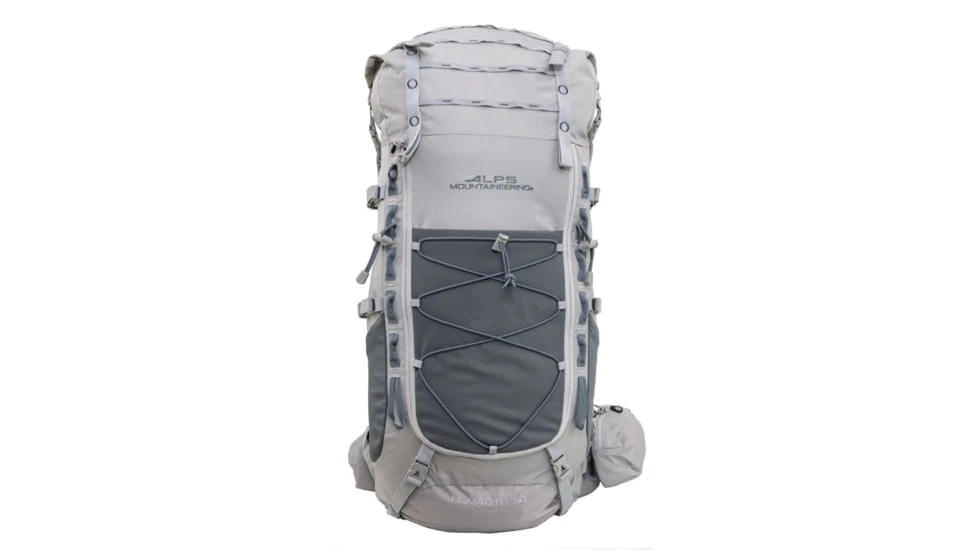 The ALPS Mountaineering Nomad is an innovative roll top pack design with an expandable volume main compartment. The Nomad can be expanded from a 40L pack all the way up to an 60L pack making it customizable for all of your backpacking adventures. The main compartment is easily accessible via a generous zippered opening. Its adjustable suspension system features two flat aluminum stays and adjusts to fit torso ranges from 15.520.5 inches. The removable waist belt features removable pockets for even further customization of the pack. The Nomad’s stretch side pockets, side compression straps, extensive daisy chains and trekking pole loops provide additional gear storage and lashing points. A hydration pocket with two side outlet hydration ports and a built-in rain cover are both included. The Nomad is thoughtfully designed to be your perfect backpacking companion.![]()