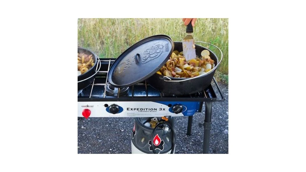 Serve a crowd with the Camp Chef 12 qt. Big Griz 16″ Classic Dutch Oven SDO16CC. This Baking Dish from Camp Chef is the perfect addition to any outdoorsman’s cast iron collection. The one-of-a-kind lid on the Camp Chef 16in Big Griz Dutch Oven displays a Grizzly Bear and also has an indentation of a Bear paw. This great piece of cast-iron cookware comes pre-seasoned with Camp Chef’s own All Natural True-Seasoning, making it ready to use right out of the box.![]()