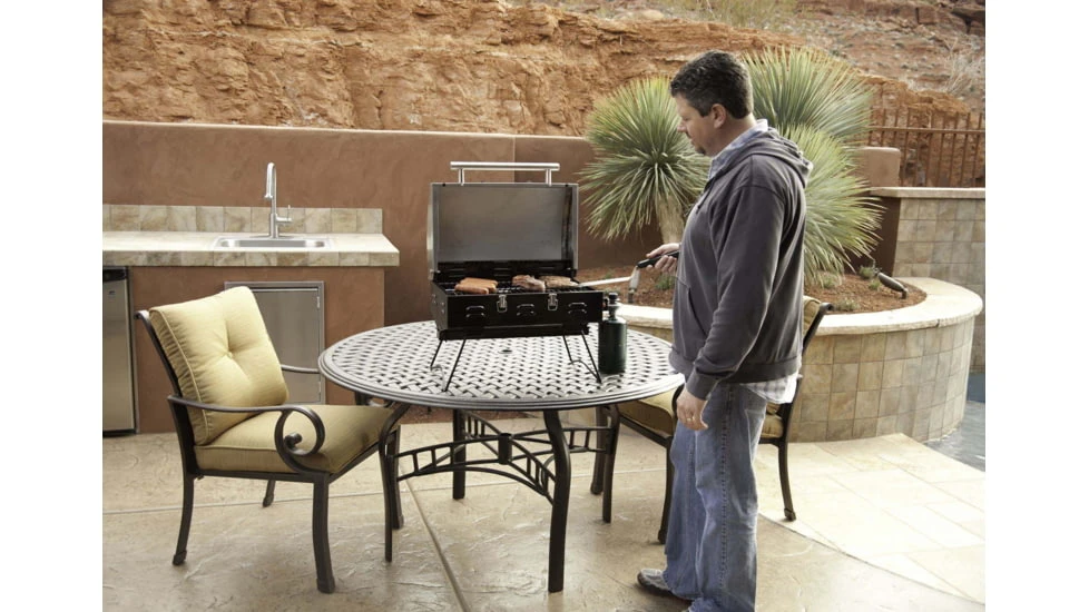 The Camp Chef Portable BBQ Grill is perfect grilling just about anywhere. This Portable BBQ Grill is light, portable and powerful. A 12,000 BTU tube burner under the grill is perfect to grill up some burgers, steaks, or whatever is on the menu. Nickel plated grill grates, a porcelain coated base, and a removable grease drip tray make clean up easy. A locking lid and convenient carry handle are perfect for when it’s time to go.![]()