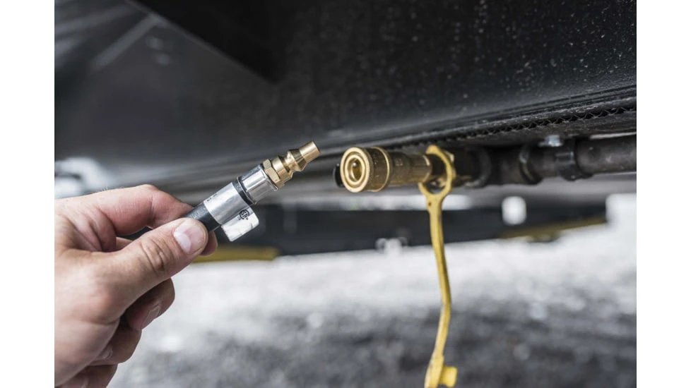 Note:Most RV’s built after 2004 come equipped with a quick disconnect with shut off. RV owners who’s RV is without this quick disconnect outlet should consult a professional gas plumber and/or a RV service center before attempting to hook up outdoor gas