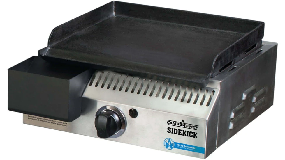 The Sidekick is the newest pellet grill accessory from Camp Chef that offers VersaGrillity without sacrificing quality to the slightest degree. This single burner system simply attaches to any Camp Chef pellet grill expanding menu options to infinite possibilities. It’s designed as one of Camp Chef’s 14″ cooking systems, meaning you can add a griddle, grill, artisan oven, stock pots, and more. The propane powered accessory ignites with ease and is fully adjustable, boasting 30,000 BTUs. Included is a pre-seasoned steel griddle, so you’re ready to cook and customize according to your needs.![]()