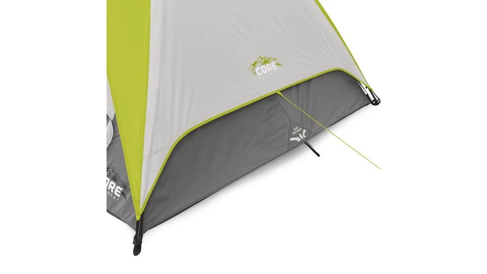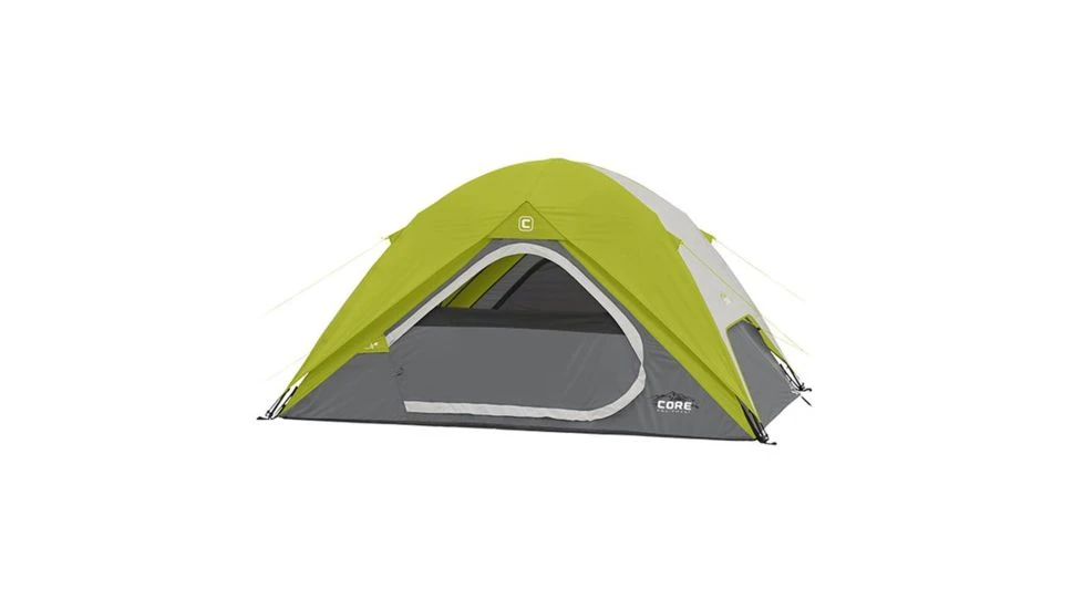 The CORE 4 Person Instant Dome Tent 9in x 7ft also features zippered privacy panels on doors and windows and keeps your gear organized with the included gear loft with lantern hook and organizer pockets.