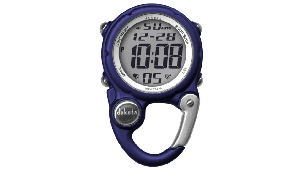 The Dakota Digital Clip Mini Watch is a great outdoor, sport, and traveler’s timepiece, offering a digital movement with an alarm that features optional hourly chime, stopwatch, countdown timer, dual time, and EL dial light. The integrated carabiner clip, stainless steel back, mineral glass crystal, and 100ft water resistance level make this clip watch a tough component for any pack, utility vest, belt loop, purse, or laptop bag. The Japanese movement has a 5 year manufacturer’s warranty.![]()