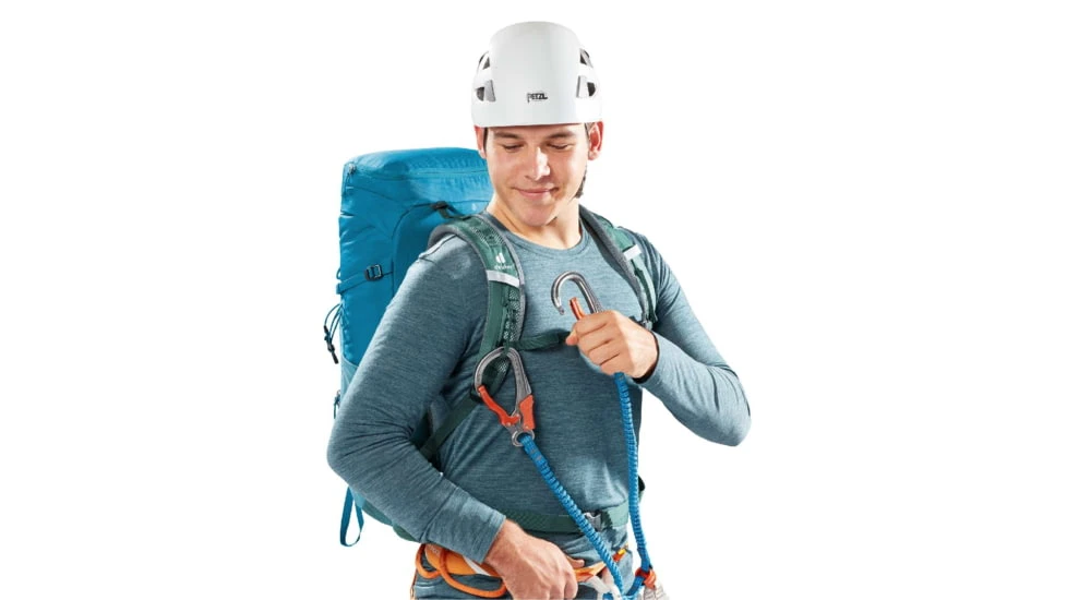 The reduced contact surface and large ventilation channels of the deuter Airstripes back system combined with perforated shoulder straps and hip fins (with pockets) ensure maximum airflow and even weight distribution – for a snug, secure fit over any terrain. The flat-format lid allows space for the head to move, even with a helmet on. Loops on the shoulder straps keep via ferrata set carabiners close at hand. And thanks to a large front zipper opening and side pockets, equipment and gear are always easy to access.![]()