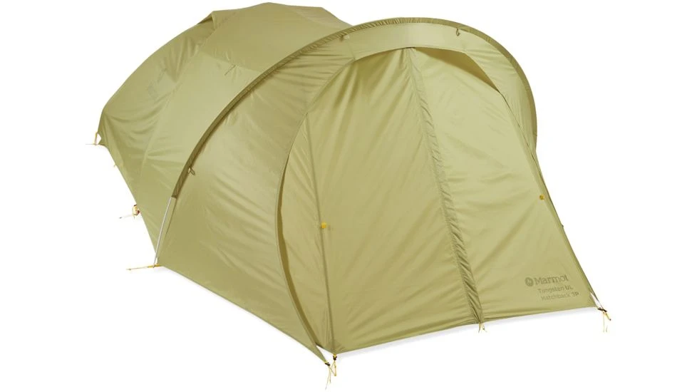 Plan ahead for campsite downpours and pack the Marmot Tungsten Ultralight Hatchback 3-Person Fly. This full-coverage fly is seam-taped to keep rain out, and fits your Tungsten Ultralight 3-Person Tent. Its rain-shield flysheet wont sag or stretch out over time, plus it resists damage from UV rays. The removable front door provides another layer between you and the rain, while its large capacity makes room for even more gear.![]()
