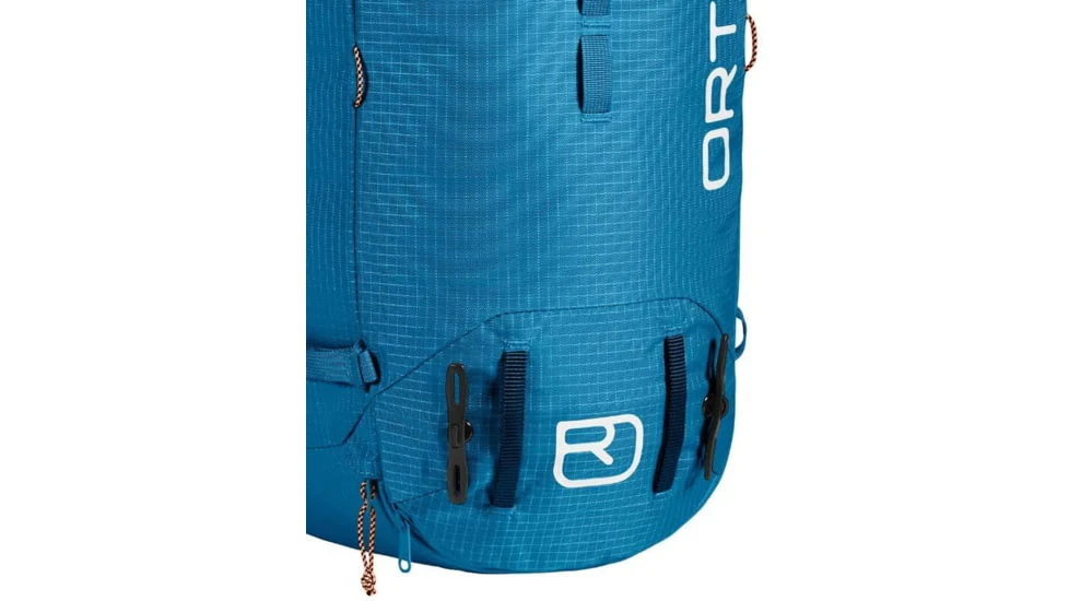 The back system for this climbing backpack offers a light-weight, removable aluminum frame and a full-contact carrying system. The frame is very flexible, but rigid along the horizontal axis in order to bear as much weight as possible. Thanks to its 3d shape, the backpack fits closely to the back and guaranties great freedom of movement and the best possible wear comfort.
