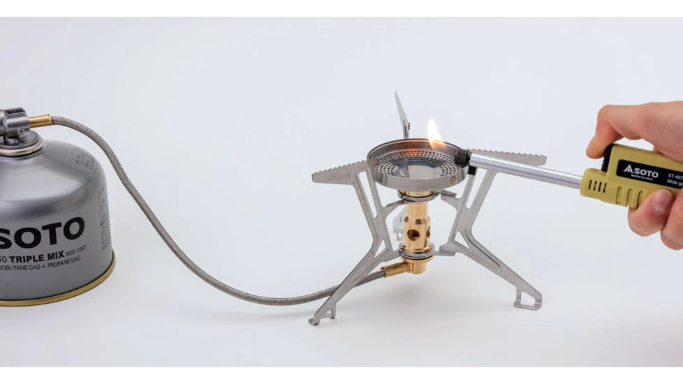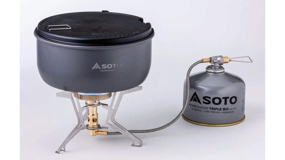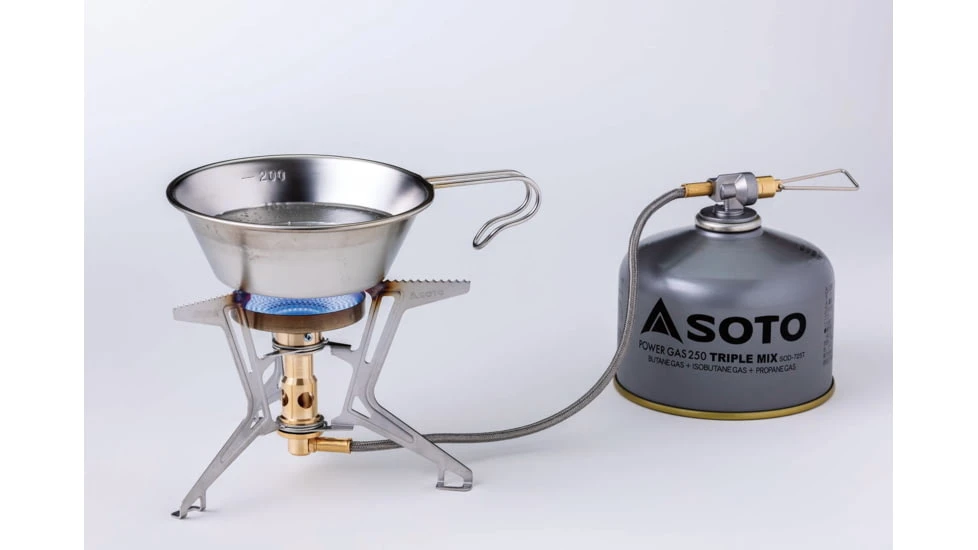 SOTO is proud to introduce its first micro regulator detachable stove that works with outdoor gas canisters. The emergence of a separate Micro Regulator stove using a gas canister for fuel! A detachable stove upgraded for mountain use. An improved burner head with a concave crater shape provides excellent performance under windy conditions. The Burner head is uniquely designed to produce over 300 sub-flames. The stove burns quietly yet produces a strong flame even in windy conditions. The stable, 3-leg support sits firmly on rough ground.![]()